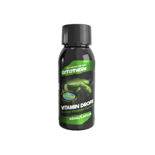 Vetafarm Ectotherm Vitamin Drops 40ml. Vitamin deficiencies are common in lizards and snakes, causing serious health problems. Ectotherm Vitamin Drops have been designed by veterinarians to provide the essential vitamins required by reptiles.