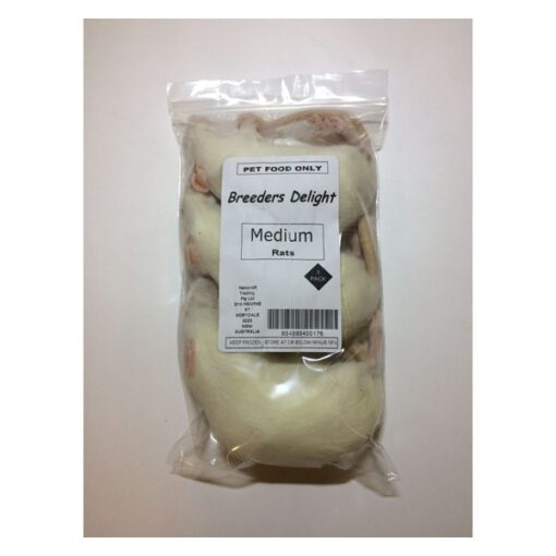 Breeders Delight Frozen Rats are bred specifically as a natural food source for various animals such as reptiles, canines, cats and birds of prey. Available in various sizes.